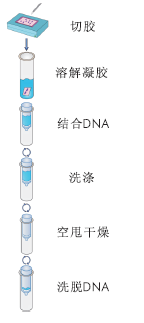 DNA產(chǎn)物經(jīng)瓊脂糖凝膠電泳分離后,切出所需的DNA片段,然后加入結(jié)合液溶解凝膠,溶解后轉(zhuǎn)移到HiBind®柱上離心吸附DNA,經(jīng)簡(jiǎn)單的洗滌后,用10-15µl無(wú)菌水洗脫DNA。純化的產(chǎn)物可用于T-A連接、PCR測(cè)序、酶切、各類型的標(biāo)記反應(yīng)等。