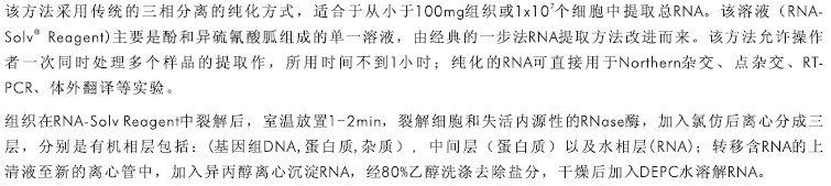 用傳統(tǒng)三相分離法從動物組織/培養(yǎng)細(xì)胞/植物樣品中純化總RNA