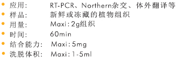 該方法采用了Omega公司的大量RNA結(jié)合柱,能快速簡(jiǎn)單地從小于2g新鮮或凍藏的植物樣品中提取高達(dá)2mg的高純度的總 RNA。提取過程不需要用到有毒的酚氯仿等有機(jī)物抽提,也不需要用到耗時(shí)的異丙醇或乙醇沉淀,純化的RNA幾乎不含有蛋白質(zhì)和糖酚類等抑制因子的污染,可直接用于RT-PCR,Northern雜交和核酸保護(hù)等實(shí)驗(yàn)。