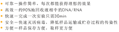 用磁珠純化方式從各種體液及無(wú)細(xì)胞培養(yǎng)液中純化病毒DNA和病毒RNA