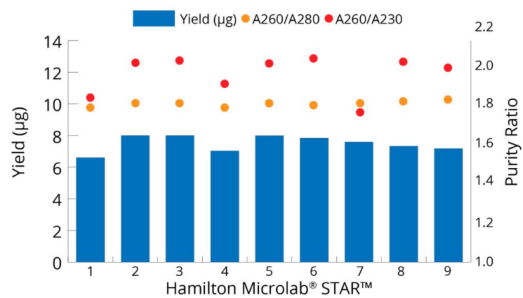 3.在Hamilton Microlab®Star™上實現(xiàn)自動化質(zhì)粒提取,產(chǎn)量和純度一致